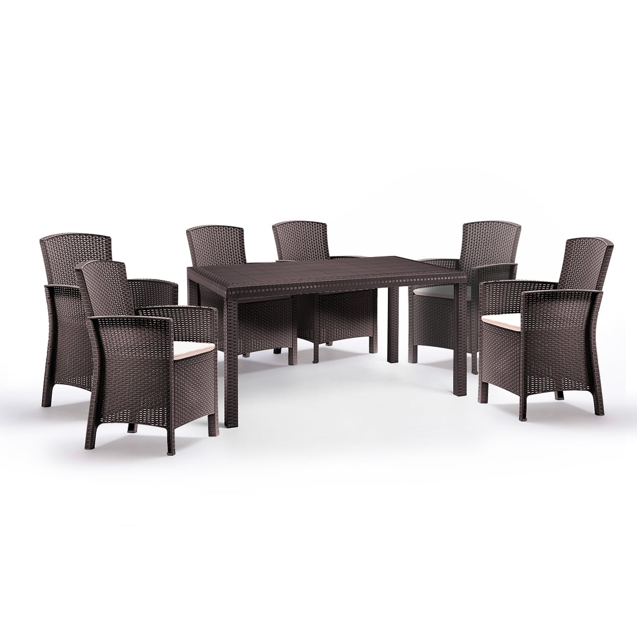 Transformišite svoj eksterijer u oazu elegancije i udobnosti uz naš baštenski set – sto i 6 Lido stolica!