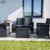 Tekstura ratana i ravni nasloni za ruke, kao i ploča stola od rezolita naglašavaju jedinstveni karakter garniture.