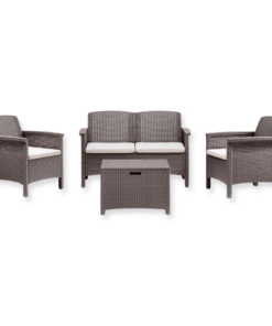 Set obuhvata 2 fotelje, stočić sa spremištem i dvosed.